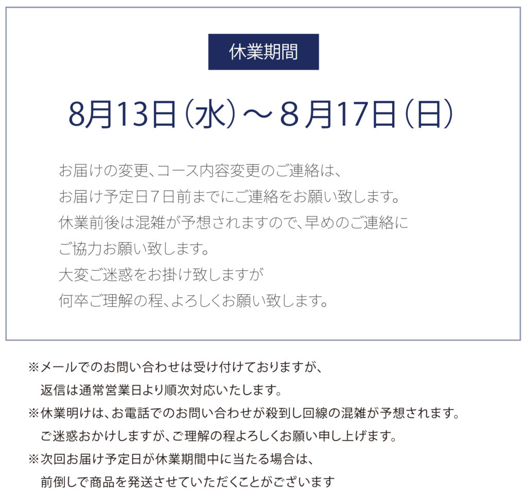 2025年夏季休業を下記の通りとさせて頂きます。