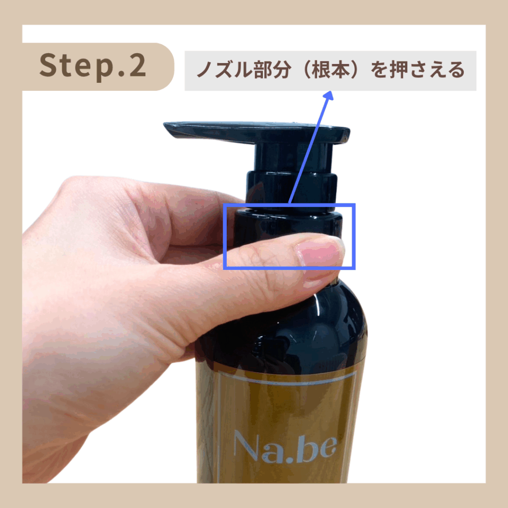 Step.2 ノズル部分(根本)を手でしっかり押さえる